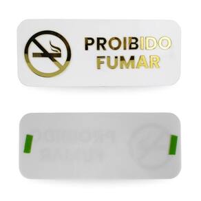 Contém: 01 - Placa de Acrílico Proibido Fumar, Branco e Dourado