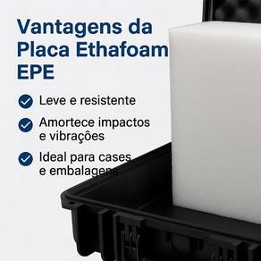 Placa Ethafoam 1 Unidade EPE Espuma P/Case 60x50x4cm Branca Descrição Se você precisa proteger objetos delicados no transporte ou na armazenagem, essa placa de espuma EPE polietileno expandido é a solução ideal Perfeita para forrar o interior de cases, maletas, embalagens técnicas, caixas organizadoras e muito mais. Como usar: Basta medir o interior do seu case ou maleta, cortar a espuma no tamanho desejado com estilete ou tesoura, e encaixar. Você pode também esculpir o formato exato do item que deseja proteger, garantindo um encaixe preciso e seguro. Dica: Use camadas de espuma para proteger equipamentos maiores ou mais frágeis, como instrumentos musicais, câmeras, drones, ferramentas e aparelhos eletrônicos. A densidade da espuma ajuda a absorver impactos e evitar danos. Vantagens do produto: Alta resistência a impactos Leve, durável e fácil de manusear Pode ser moldada conforme a necessidade Células fechadas: não absorve umidade Cor branca: visual discreto e Seja para ou pessoal, essa placa de espuma é uma escolha inteligente para quem valoriza organização, segurança e acabamento de qualidade. Dimensões: Espessura: 4cm Largura: 50cm Comprimento: 60cm Contéudo: 1 x Placas Ethafoam EPE Espuma Para Case 60x50x4cm Branca Marca: Não Informado