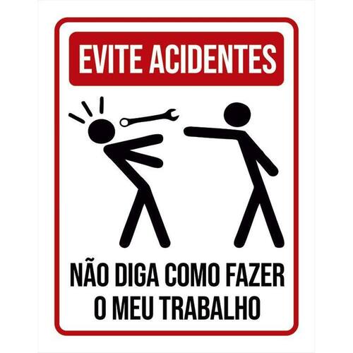 Placa Evite Acidentes Não Diga Como Fazer Meu Trabalho 36x46 Informações do Produto: Placas decorativas fabricadas com poliestireno de alto impacto PSAI de 2mm e impressão ultravioleta. - Medidas: 36cm x 46cm - Fixação: Todas as placas possuem adesivo dupla face para aplicação em qualquer tipo de superfície lisa. de 12 meses e disponibilidade imediata. Marca: Não Informado