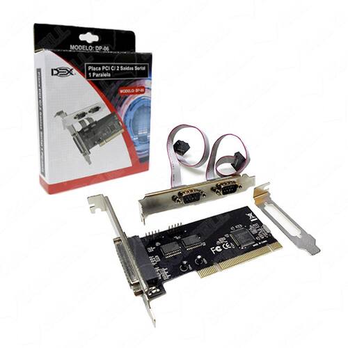 A Placa Pci com 2 Saídas Seriais E 1 Paralela Dp06 da marca dex é perfeita para quem precisa expandir as conexões seriais e paralelas do seu computador. Compatível com sistemas operacionais como Windows, DOS, Linux, 2000, Server 2003, XP, Vista, Server 2008, Win 7, 8 e 10, essa placa externa se conecta ao barramento ou slot PCI do seu computador para adicionar 2 portas seriais e 1 porta paralela. A porta serial dessa placa é compatível com os padrões industriais 16c550, 16c552, 16c554 e 16c750 UART. Ela também possui um chip com um buffer de 256 bytes que garante uma transmissão e recepção eficiente de dados. Com uma taxa de transferência bidirecional de até 2MB/s, essa placa é totalmente aplicável ao formato serial 5678 bit e suporta operações com 1 ou 2 stop bits. Além disso, essa placa acompanha um CD de instalação para facilitar o processo de configuração. A porta paralela da placa é aplicável com o protocolo IEEE 1284 e é compatível com os modos SPP, PS2, EPP e ECP. Com peso de apenas 0,140 kg e dimensões de 17cm x 13cm x 3cm, essa placa é compacta e fácil de instalar. Com de 3 meses, a Placa Pci com 2 Saídas Seriais E 1 Paralela Dp06 é a solução ideal para quem precisa de mais portas seriais e paralelas em seu computador Marca: Não Informado