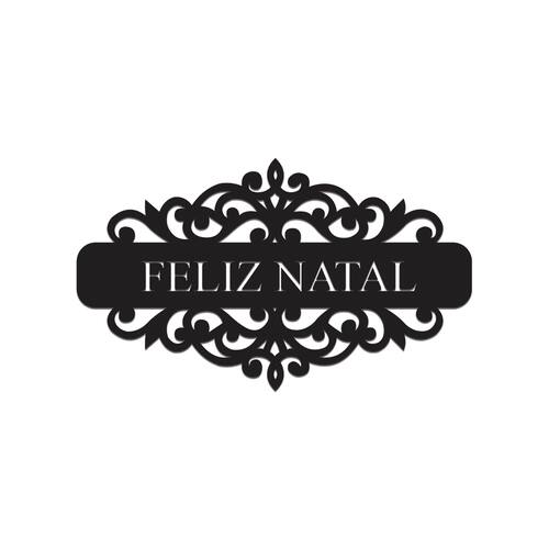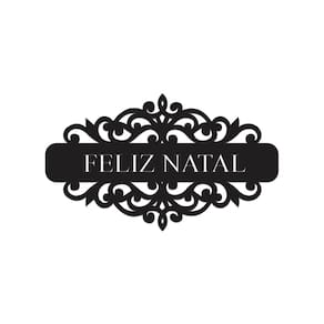 Placa Feliz Natal Com Arabesco 30cmx17cm - Cria Arte Laser Preto -