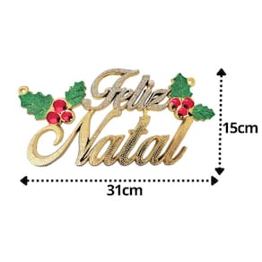 Placa Natalina - Feliz Natal Glitter Dourado 31cm x 15cm