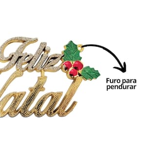 Placa Natalina - Feliz Natal Glitter Dourado 31cm x 15cm