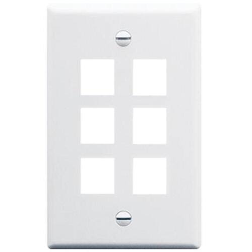 - Placa frontal, grande, de 6 portas, branca - Configurada para caber em uma caixa de saída padrão de grupo único - Projetada para suportar a distribuição de voz, dados e outras necessidades de comunicação na área de trabalho para aplicações comerciais ou residenciais - Construção robusta e durável - Projetada para ajudar a cobrir cortes irregulares e irregulares de drywall - Acomoda uma ampla variedade de módulos fáceis de encaixar, oferecendo flexibilidade de configuração - Aceita todos os módulos IC107