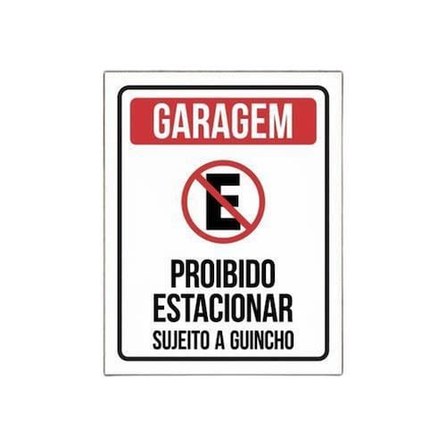 Placa Garagem Proibido Estacionar Sujeito A Guincho 27x35 - Informações do Produto: Placas decorativas fabricadas com poliestireno de alto impacto PSAI de 2mm e adesivo vinil automotivo de alta performance. - Medidas: 27cm x 35cm - Fixação: Todas as placas possuem adesivo dupla face para aplicação em qualquer tipo de superfície lisa. de 12 meses e disponibilidade imediata. Marca: Sinalizo Ean: 7908838937679