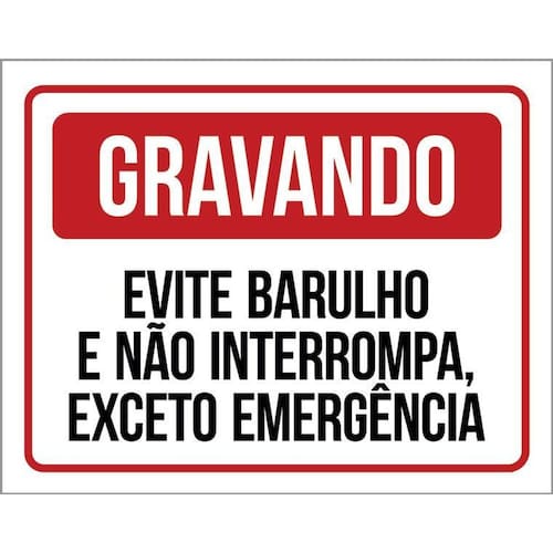 Placa Gravando Evite Barulho Não Interrompa 36X46