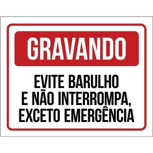 Placa Gravando Evite Barulho Não Interrompa 36X46