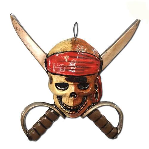 Placa Halloween Caveira Pirata 55cm Halloween Tamanho: 55cm Alutura x 49cm Largura Composição: Plástico Você gosta de Piratas Pendura essa caveira na porta do seu quarto Marca: Studio Das Festas