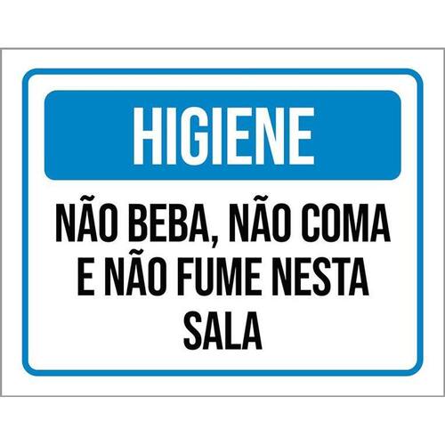 Placa Higiene Não Beba Não Coma Não Fume Nesta Sala 36x46 - Informações do Produto: Placas decorativas fabricadas com poliestireno de alto impacto PSAI de 2mm e adesivo vinil automotivo de alta performance. - Medidas: 36cm x 46cm - Fixação: Todas as placas possuem adesivo dupla face para aplicação em qualquer tipo de superfície lisa. de 12 meses e disponibilidade imediata. Marca: Não Informado Ean: 7794723894635