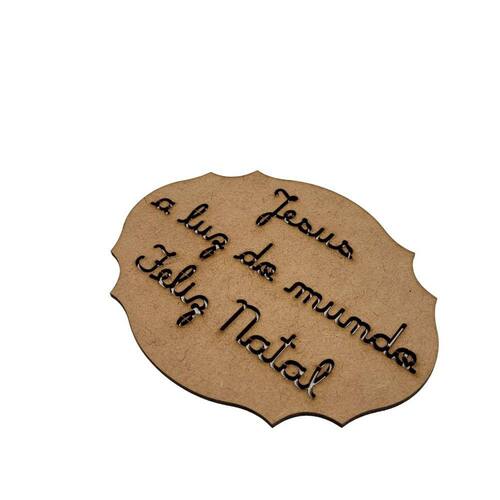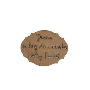 Placa com frase vasada "Jesus a luz do mundo Feliz Natal" com letra cursiva- 13x10cm