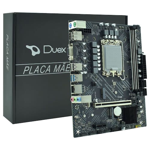 Em formato mATX de 24.4 x 20.5 cm, a Duex DX-H610ZG cabe em cases compactos sem sacrificar expansão, com VRM sólido para processadores como Core i3 ou i5 que demandam estabilidade em cargas contínuas. Seu PCB de alta qualidade resiste a vibrações e variações térmicas, enquanto headers para fans e RGB adicionam customização básica para visualizações personalizadas. Como opção econômica da Duex, ela transforma ideias de PC em realidades funcionais, perfeita para quem busca uma base sólida para upgrades progressivos em gaming casual ou tarefas profissionais.