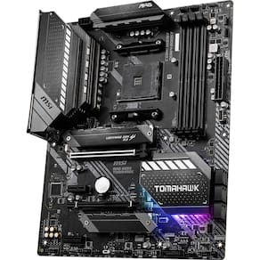 Placa-mãe MSI MAG B550 TOMAHAWK Gaming (AMD AM4, DDR4, PCIe 4.0, SATA 6 Gb/s, M.2, USB 3.2 Gen 2, HDMI/DP, ATX, processadores AMD Ryzen série 5000) - Suporte para processadores AMD Ryzen de 3ª geração e futuros processadores AMD Ryzen com atualização de BIOS. Portas de áudio (traseira): 5plus Optical S/PDIF (Realtek ALC1200/ ALC) Codec 1220P) - Suporta memória DDR4 de canal duplo de até 128 GB (4866 MHz) - LAN dupla integrada: LAN de 2,5 G mais LAN Gigabit - Mystic Light: iluminação LED RGB e cabeçalhos de pinos extensíveis - 16,8 milhões de cores/29 efeitos - O Audio Boost recompensa seus ouvidos com qualidade de som de nível de estúdio para experiências de jogo envolventes - Solução térmica premium: capa de alumínio com almofada térmica adicional de 7 W/mK e PCB com cobre espessado de 2 onças - Experiência de jogo ultrarrápida: PCIe 4.0, Lightning Gen 4 M.2 com M.2 Shield Frozr, AMD Turbo USB 3.2 GEN 2
