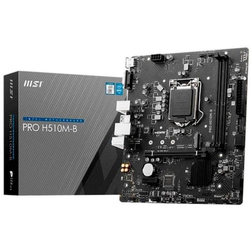 Placa mae msi pro h510m-b - chipset h470 - intel 1200 - somente 10 ger - ddr4 - matx - m.2 -vga/hdmi Placa mãe msi h510m-b pro, intel lga 1200, matx, ddr4 3200mhz - 911-7e05-004 . Apesar do nome h510m-b esta mother board é baseada em um chipset intel h470 e por isso ela só é compativel com processadores de 10 geração core, não aceitando upgrade de bios para 11 geração core. Marca: msi - modelo: h510m-b pro . Processadores suportados Suporta 10th geração intel core i9, core i7, core i5, core i3, pentium gold, celeron com lga 1200.