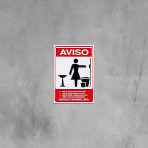 Placa Mantenha O Banheiro Limpo Feminino 15x20 - S-231 F9e Detalhes Deixe o seu ambiente mais organizado garantindo mais produtividade e segurança com as placas de identificação e sinalização de locais. As placas de sinalização de locais são confeccionadas em Plástico PS com 20cm de altura e 15cm de largura. Contém apenas 1 unidade de placa com a escrita Aviso Mantenha O Banheiro Limpo Feminino. Informações técnicas: Código: S-231 Marca: Acesso Peso Kg : 0,020 Material: Plástico Dimensões do produto: Altura: 20cm X Largura: 15cm X Profundidade: 0,16cm Dimensões da embalagem: Altura: 24cm X Largura: 15cm X Profundidade: 0,16cm Código Universal: 7898414402311 Ncm: 39031900
