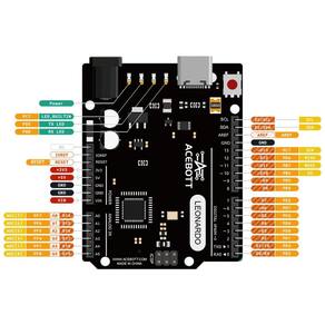 Conteúdo da caixa: Placa ACEBOTT Leonardo R3 QA016 e cabo USB tipo-C de 1 m