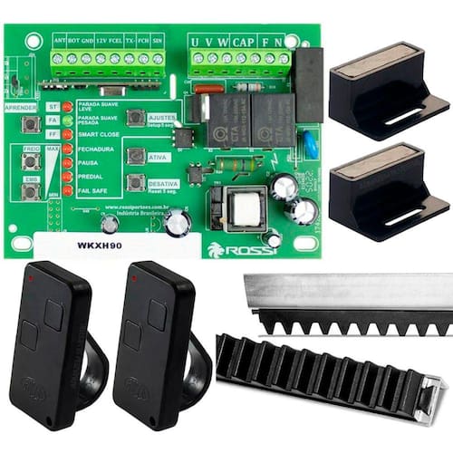 A VERSÃO NKXH30 FOI SUBSTITUIDA PELA WKXH90.WKXH90 - Central de comando para deslizantes com fim de curso sensor HALLA nova série W mantém o mesmo funcionamento das centrais atuais, porém com muitas vantagens adicionais. Com a nova interface ficou ainda mais fácil configurar e ajustar as funções disponíveis.Diferenciais:Maior resistência contra intempéries e fonte reforçada;Compatibilidade com a fotocélula sem fio XP20W-D FAAC;Módulo de recepção RF em cristal;Sistema de recepção HCS, anti-clonagem;Função residencial/predial (R/P);Fechamento automático (PAUSA) regulável;Fim de curso sensor Hall;Partida suave;Parada suave programável;Função Smart Close, que diminui ou zera possíveis folgas entre o portão e o batente;Apaga controle individual;Freio eletrônico com 5 níveis;Grava controle Master;Entrada para fotocélula com fail safe e sinaleira;Saída para luz de garagem;Saída fechadura (FCH).Itens Inclusos:01 Central de Comando WKXH9002 Controle 2 Canais NTX Preto01 Par de Suporte com Imãs03 Metros de Cremalheira01 Fio de Antena (15cm)01 Manual de Instrução