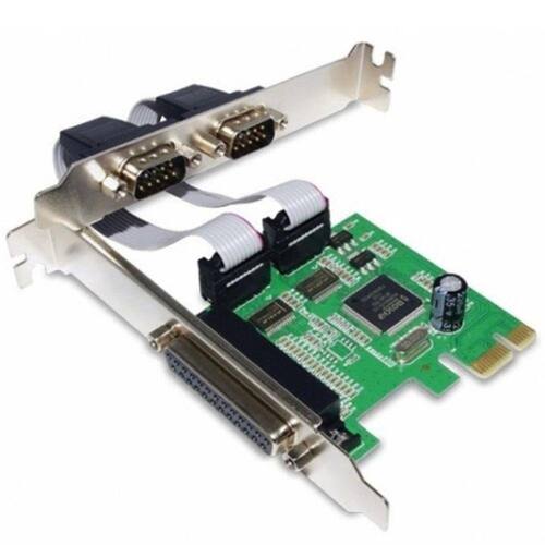 A PLACA PCI-EXPRESS PARA IMPRESSORA MULTISERIAL, PERFIL PADRAO COM 1 PORTA DB-25 PARALELA + 2 PORTAS SERIAIS DISPONIBILIZA 2 PORTAS SERIAIS NO PADRAO RS-232 DB-9 MACHO RS-232 EXTERNAS