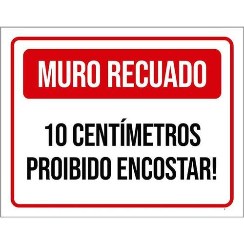 Placa Muro Recuado 10 Cm Proibido Encostar 36x46 - Informações do Produto: Placas decorativas fabricadas com poliestireno de alto impacto PSAI de 2mm e adesivo vinil automotivo de alta performance. - Medidas: 36cm x 46cm - Fixação: Todas as placas possuem adesivo dupla face para aplicação em qualquer tipo de superfície lisa. de 12 meses e disponibilidade imediata. Marca: Não Informado Ean: 7794882763506