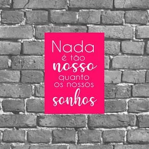 Placa nada é tão nosso quanto nossos sonhos 18x27cm Informações do produto tire todas as suas dúvidas no descritivo abaixo: placas decorativas são tendência e uma excelente ideia para decorar ambientes de forma econômica e bonita, elas são leves e extremamente fáceis de instalar; além de servir para a decoração de qualquer ambiente, indo desde estabelecimentos como barbearias e bares, até quartos, sala, área de lazer, churrasqueira, etc. Ou ainda, e por que não, poder quebrar aquele galho tampando imperfeições indesejadas da parede com um toque especial medidas - cada peça tem 18x27cm. Material do papel - papel fotográfico brilhante de altíssima resolução - de 3 meses.