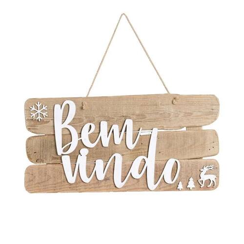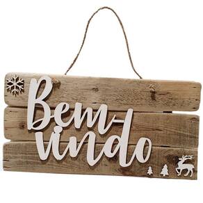 Placa natalina rústica bem-vindo de madeira natal cromus tamanho: 52x30x1cm + 20cm de cordão composição: madeira contém: 1 unidade marca: cromus atenção: imagem meramente ilustrativa. Pode ocorrer mudanças no tom da cor para o produto real ou mudanças na embalagem sem aviso prévio por parte do fornecedor/fabricante.
