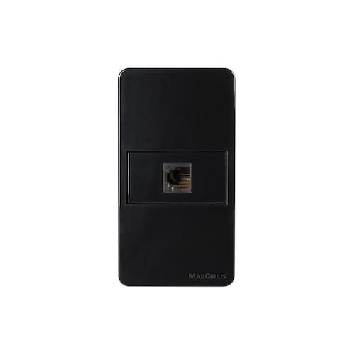 Placa para Condulete Caixa 3/4 com Tomada para Telefone MarGirius Sleek RJ11 4 Fios Preto Ebony