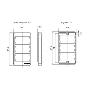 Dimensões AxLxP (mm): Placa: 93,4x50,3x12,9 - Suporte: 93,4x50,4
