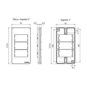 Dimensões AxLxP (mm): Placa: 117,4x61x13,4 - Suporte: 117,4x61