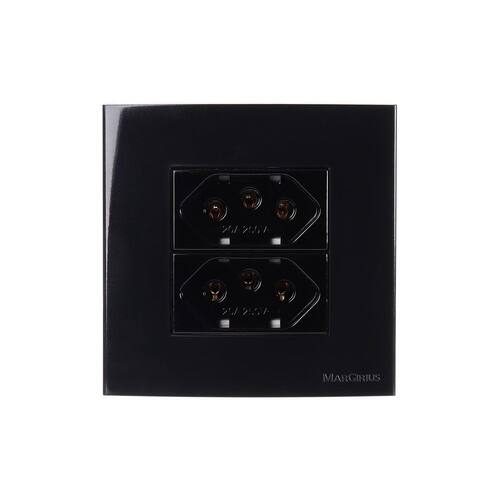 Placa para Móveis 80x80 com Tomada Dupla MarGirius Sleek 2P+T 20A Preto Ebony