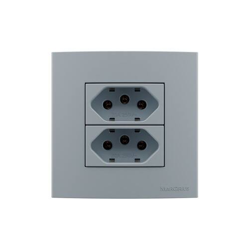 Placa para Móveis 80x80 com Tomada Dupla MarGirius Sleek Colors 2P+T 20A Cinza - Cinza
