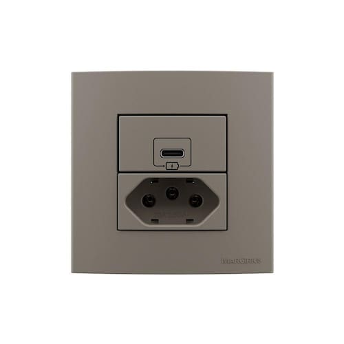 Placa Para Móveis 80x80 Com Tomada Usb-c 2a 10w E Tomada 2p+t 20a Margirius Sleek Argila Argila