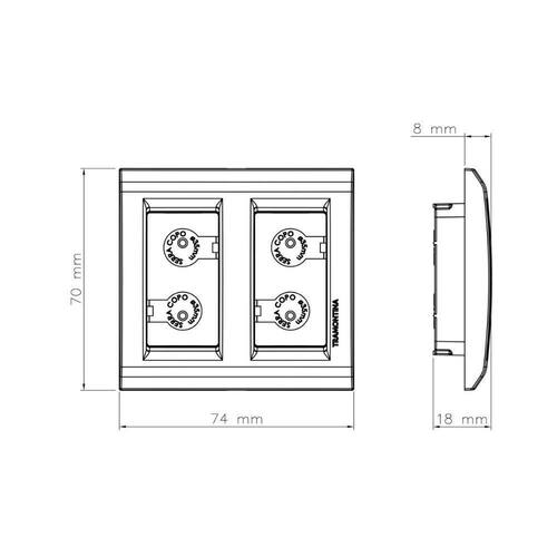 Para equipar seus móveis e deixá-los completos, a Placa para Móvel 2 Postos Tramontina Liz Branca é a escolha perfeita. Ela é produzida em termoplástico com acabamento brilho e vai deixar o móvel onde for inserida muito mais bonito e funcional. Ela é de fácil instalação, pois conta com gabarito de marcação de corte com a serra copo integrado a peça, além de acompanhar parafusos para fixação. Ainda conta com um excelente diferencial, ela possui profundidade reduzida. Escolha Tramontina e insira em sua casa o que há de melhor!
