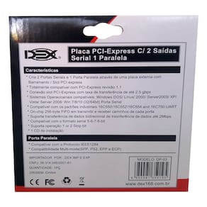 A Placa Pci Express 2 Seriais, 1 Paralela também é compatível com os padrões industriais 16C550, 16C552, 16C554 e 16C750 UART, o que garante a compatibilidade com uma ampla variedade de dispositivos.