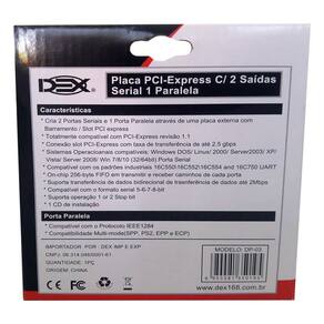 A Placa Pci Express 2 Seriais, 1 Paralela também é compatível com os padrões industriais 16C550, 16C552, 16C554 e 16C750 UART, o que garante a compatibilidade com uma ampla variedade de dispositivos.