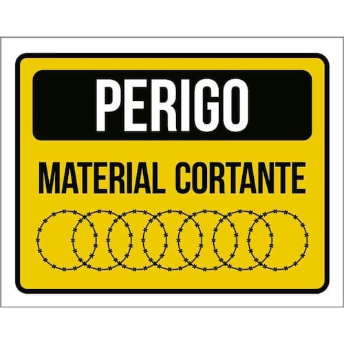 Placa Perigo Material Cortante Concertina Sinalização 36x46 - Informações do Produto: Placas decorativas fabricadas com poliestireno de alto impacto PSAI de 2mm e adesivo vinil automotivo de alta performance. - Medidas: 36cm x 46cm - Fixação: Todas as placas possuem adesivo dupla face para aplicação em qualquer tipo de superfície lisa. de 12 meses e disponibilidade imediata. Marca: Não Informado Ean: 7794723454525