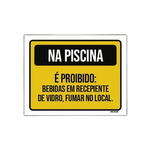 Placa Piscina Proibido Bebidas Vidro Fumar 18X23