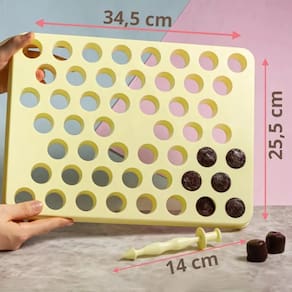 Instruções de uso: - Use uma base firme para apoiar a placa; - Passe desmoldante de sua preferência na placa; - Coloque a massa do seu docinho ainda quente, espalhe bem para preencher todas as cavidades; - Espere aproximadamente 10 minutos, vire sua placa e seus doces estarão prontos para serem retirados - Utilize o empurrador para remover os docinhos.