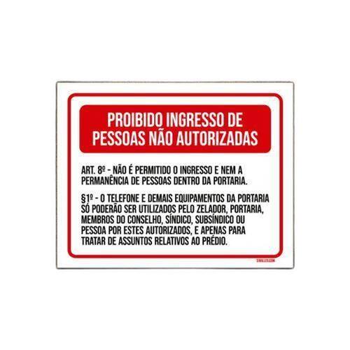 Placa Proibido Ingresso Pessoas Não Autorizadas 18x23 Informações do Produto: Placas decorativas fabricadas com poliestireno de alto impacto PSAI de 2mm e adesivo vinil automotivo de alta performance. - Medidas: 18cm x 23cm - Fixação: Todas as placas possuem adesivo dupla face para aplicação em qualquer tipo de superfície lisa. de 12 meses e disponibilidade imediata. Marca: Não Informado Ean: 7794402847662