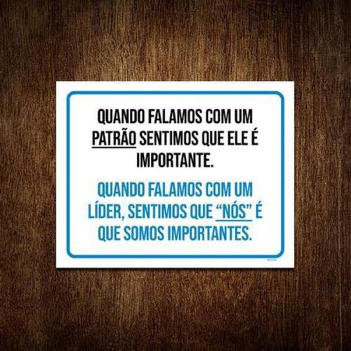 Características: - Placa decorativa Quando Falamos Com Um Patrão E Líder - Fabricadas em poliestireno de alto impacto - Ideal para decorar e organizar os ambientes - Impressão ultravioleta