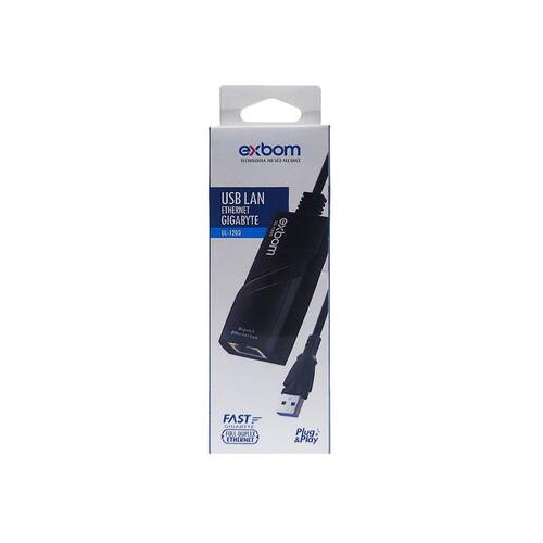 Placa de Rede RJ45 Externa USB 3.0 Gigabit 10/100/1000Mpbs Plug and Play Exbom UL-1200 O UL-1200 é um dispositivo USB 3.0 ideal para ser utilizado como placa de Rede Externa, ele é compacto e fácil de utilizar. Basta conectar no seu computador ou notebook, inserir o cabo de rede e pronto, o dispositivo já estará funcionando devido a sua tecnologia Plug and Play. Com este HUB, você poderá obter o melhor desempenho da sua internet, podendo atingir ate 1000Mpbs.