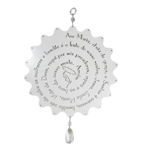 Informações Técnicas: Peça de mdf branco com a reza Ave maria.
