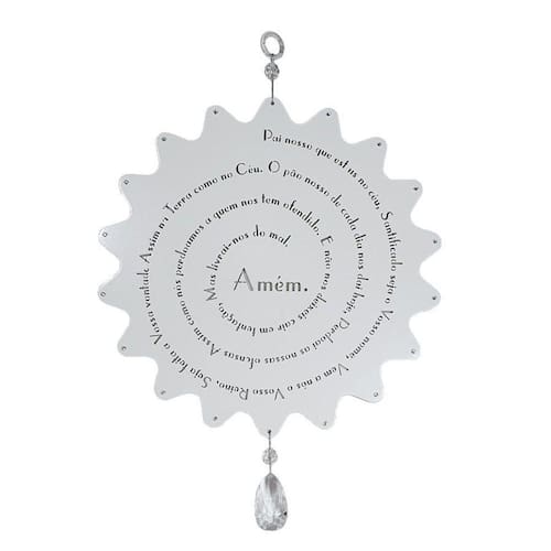 Informações Técnicas: Peça de mdf branco com a reza do Pai Nosso.