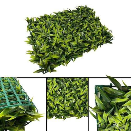 Placas de samambaia artificial, perfeita para uso como cerca artificial ou parede de plantas, um ótimo recurso para adicionar um pouco de vegetação. Eles são fáceis de montar, pois cada peça simplesmente se encaixa para criar uma cobertura uniforme. Os revestimentos de parede apresentam uma aparência natural, sem complicações com um apelo visual instantâneo, se adaptam a qualquer muro ou varanda.