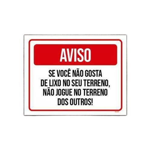 Características: - Placa decorativa Aviso Se Você Não Gosta Lixo Terreno Não Jogue - Fabricadas em poliestireno de alto impacto - Ideal para decorar e organizar os ambientes - Impressão ultravioleta