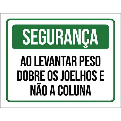 Placa Segurança Levantar Peso Dobre Joelhos Não Coluna 36x46