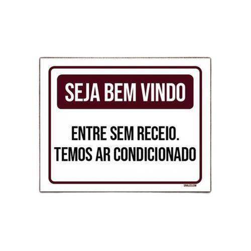 Características: - Placa decorativa Seja Bem Vindo Entre Sem Receio Ar Condicionado - Fabricadas em poliestireno de alto impacto - Ideal para decorar e organizar os ambientes - Impressão ultravioleta