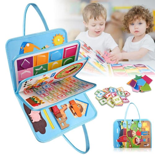 - 📘🧒?Portable Activity Travel Busy Board?Travel Busy Board O livro silencioso e ocupado usa um design leve e compacto. As crianças podem carregá-lo facilmente ou colocá-lo na mochila, para que possam carregá-lo para onde quiserem. A excelente portabilidade o torna um brinquedo de viagem perfeito para pranchas de atividades. As crianças podem jogá-lo em viagens rodoviárias ou de avião. Com estes brinquedos de viagem para crianças pequenas, as crianças não ficarão entediadas e continuarão aprendendo alegremente durante a viagem, e poderão ficar ocupadas e quietas durant