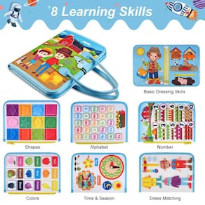Populares em atividades infantis para manter as crianças ocupadas, os brinquedos de tabuleiro para viagens infantis aumentam a interação das crianças e trazem mais interação entre as crianças e os pais. Este quadro movimentado de aprendizagem educacional pré-escolar é a escolha perfeita para brinquedos de atividades infantis. É o presente perfeito para crianças de 3 a 6 anos, como presente de aniversário, prêmios de carnaval, presente de Natal, presente de Halloween, presente de Ação de Graças e prêmios de concursos. Surpreenda seu filho com nossa incrível prancha ocupada!