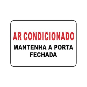 Contém: 01 - Placa sinalizadora de plástico vinil Ar Condicionado. Mantenha a porta fechada