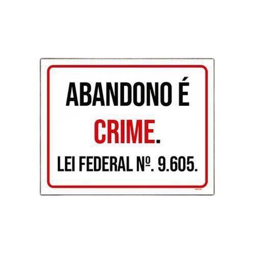 Placa Sinalização - Abandono É Crime Lei Federal 27x35 - Informações do Produto: Placas decorativas fabricadas com poliestireno de alto impacto PSAI de 2mm e adesivo vinil automotivo de alta performance. - Medidas: 27cm x 35cm - Fixação: Todas as placas possuem adesivo dupla face para aplicação em qualquer tipo de superfície lisa. de 12 meses e disponibilidade imediata. Marca: Não Informado Ean: 7908838977200