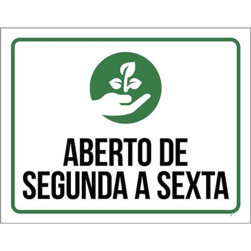 Placa Sinalização - Aberto Segunda A Sexta Plantas 36X46